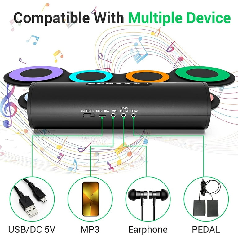 Yigou Electric Drum Set 7 Drum Practice Pad Roll Up Drum Pad Machine With Headphone Built In Speaker Drum Sticks Foot Pedals 10 Hours Playtime Great Holiday Xmas Birthday Gift For Kids Walmart Com